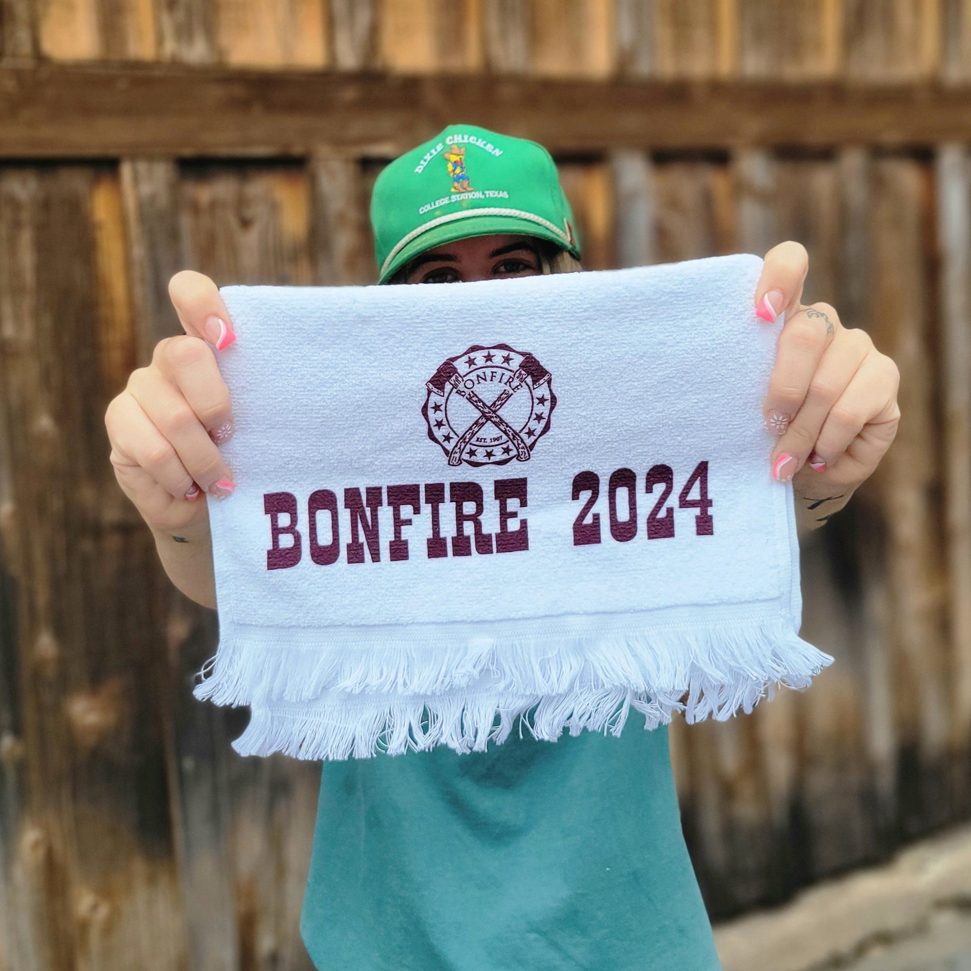 Get ready to ignite the spirit of Aggieland with our Bonfire 2024 Rally Towels! The design captures the essence of Aggie pride, making them a must-have for any fan. Wave them high and proud as you join in the celebration of Aggie football and the timeless tradition of Bonfire.