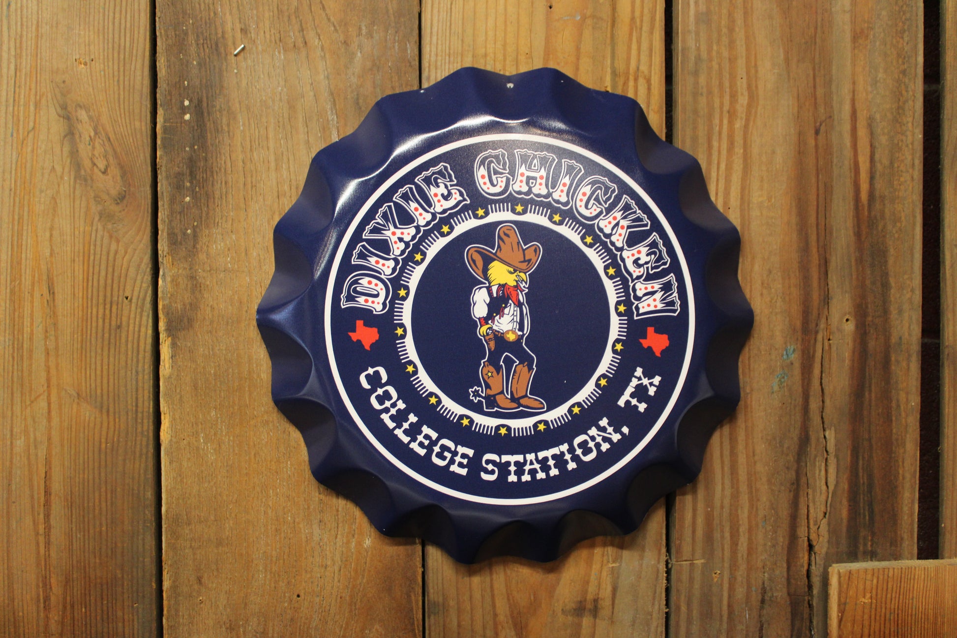 Bring a touch of the Chicken to your space with these oversized metal bottle-cap signs. Crafted from durable, lightweight metal, they’re easy to hang and built to last. Whether you’re decorating a game room, bar area, or any spot that could use a little personality, these bold Dixie Chicken signs make the perfect standout piece.