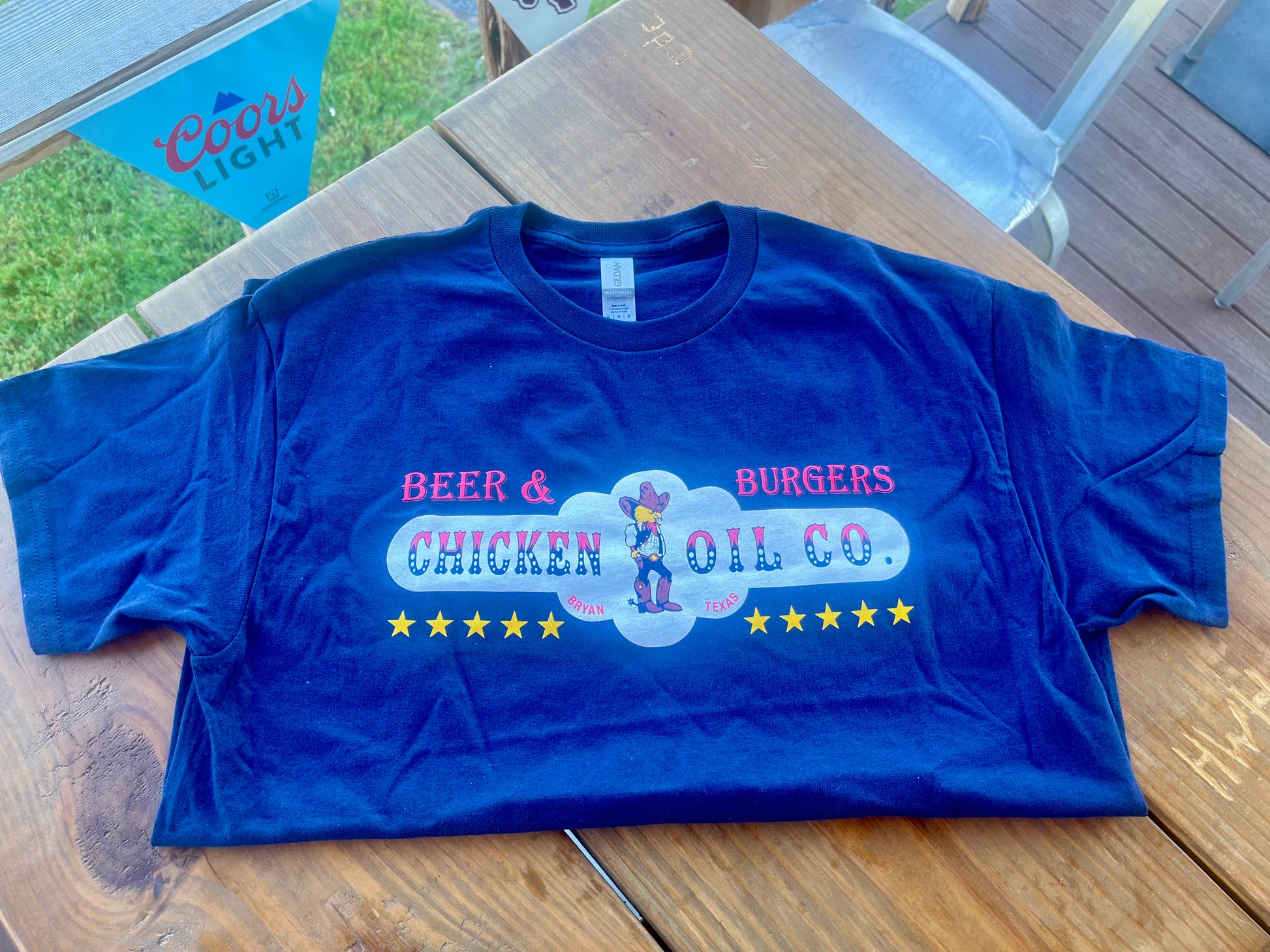 The classic Chicken Oil logo on a classic soft tee.