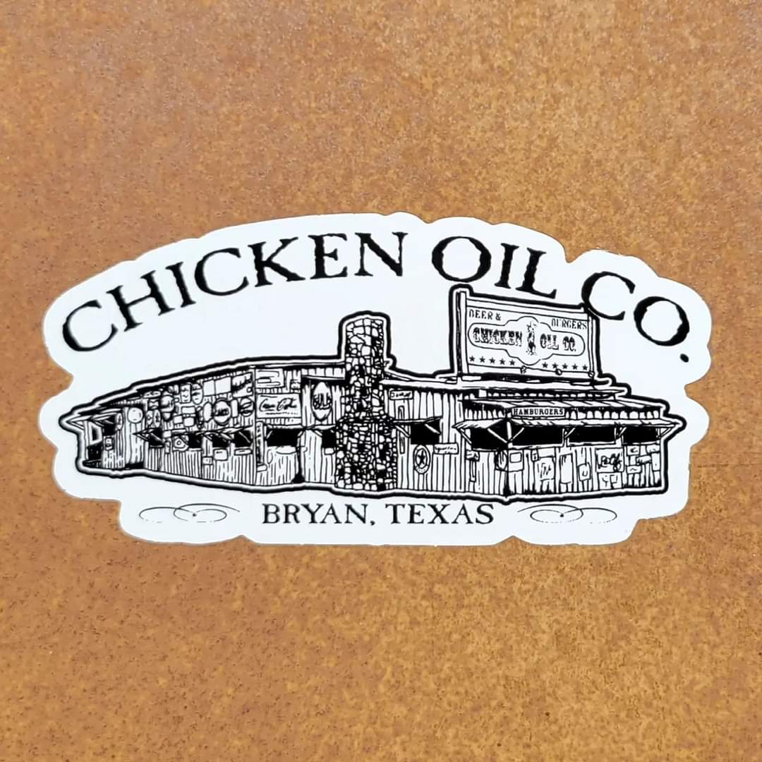 The Chicken Oil Company is Bryan, TX proud since 1977! Whether you're in Bryan, somewhere else in Texas, or across the United States, show off your love of your favorite down-home restaurant with this Building Sticker. It'll go great on your toolbox, lunch box, tumbler or cooler!