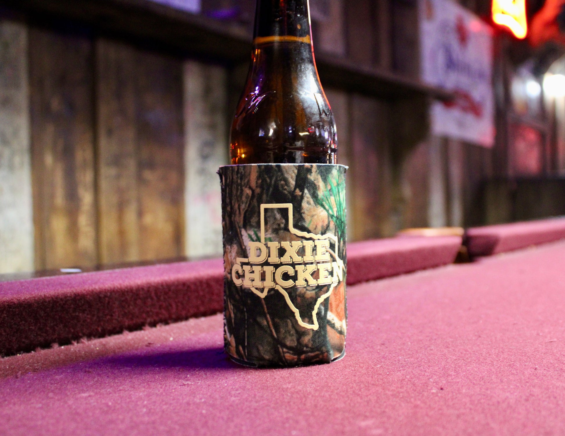 If your favorite color is camo, then have we got a treat for you! Keep your drinks cold with this high-quality neoprene koozie. It looks great at the Chicken, around the campfire, or at your favorite hunting ground.