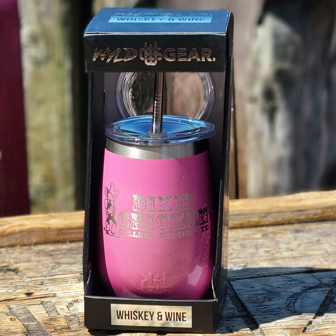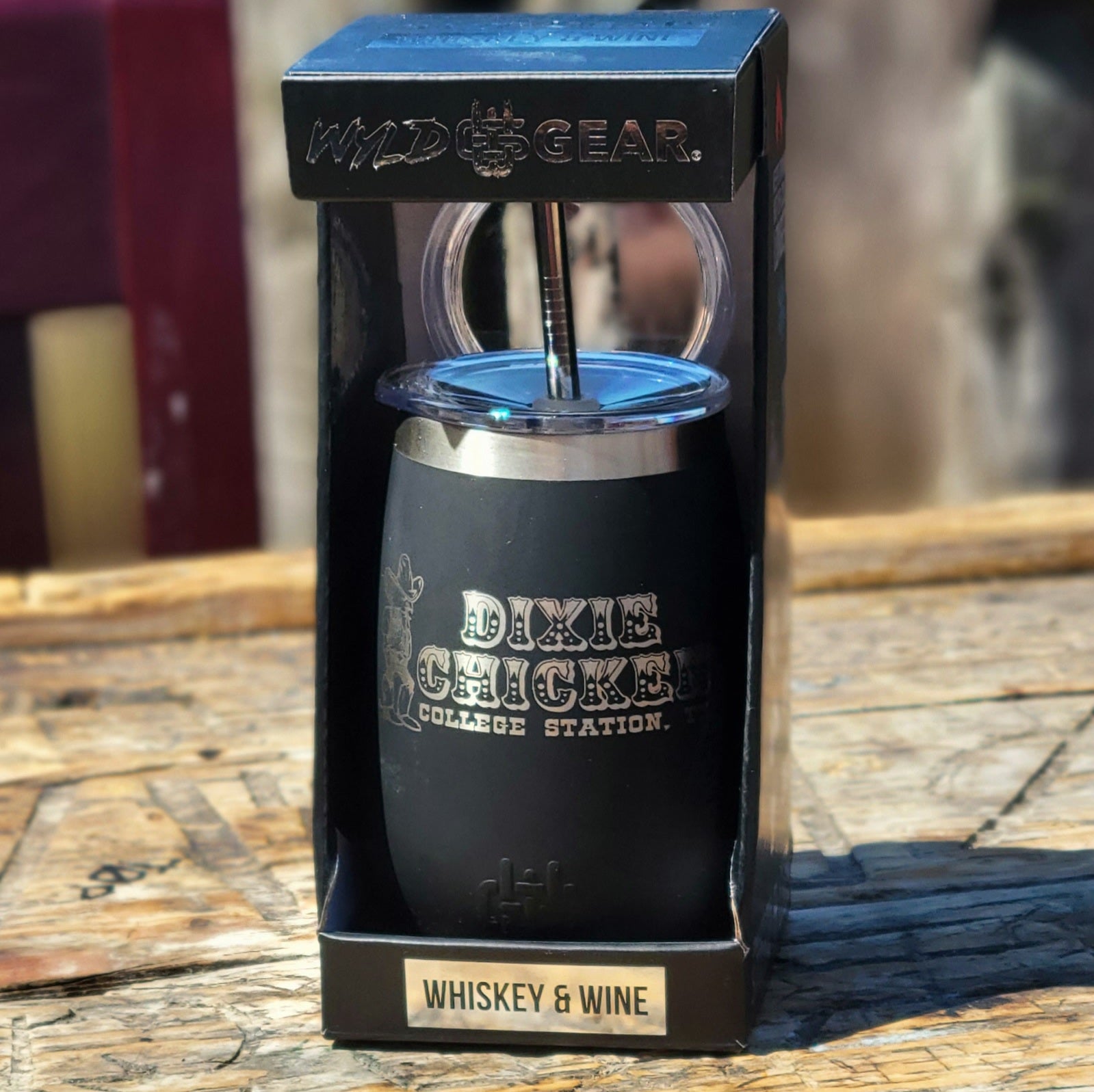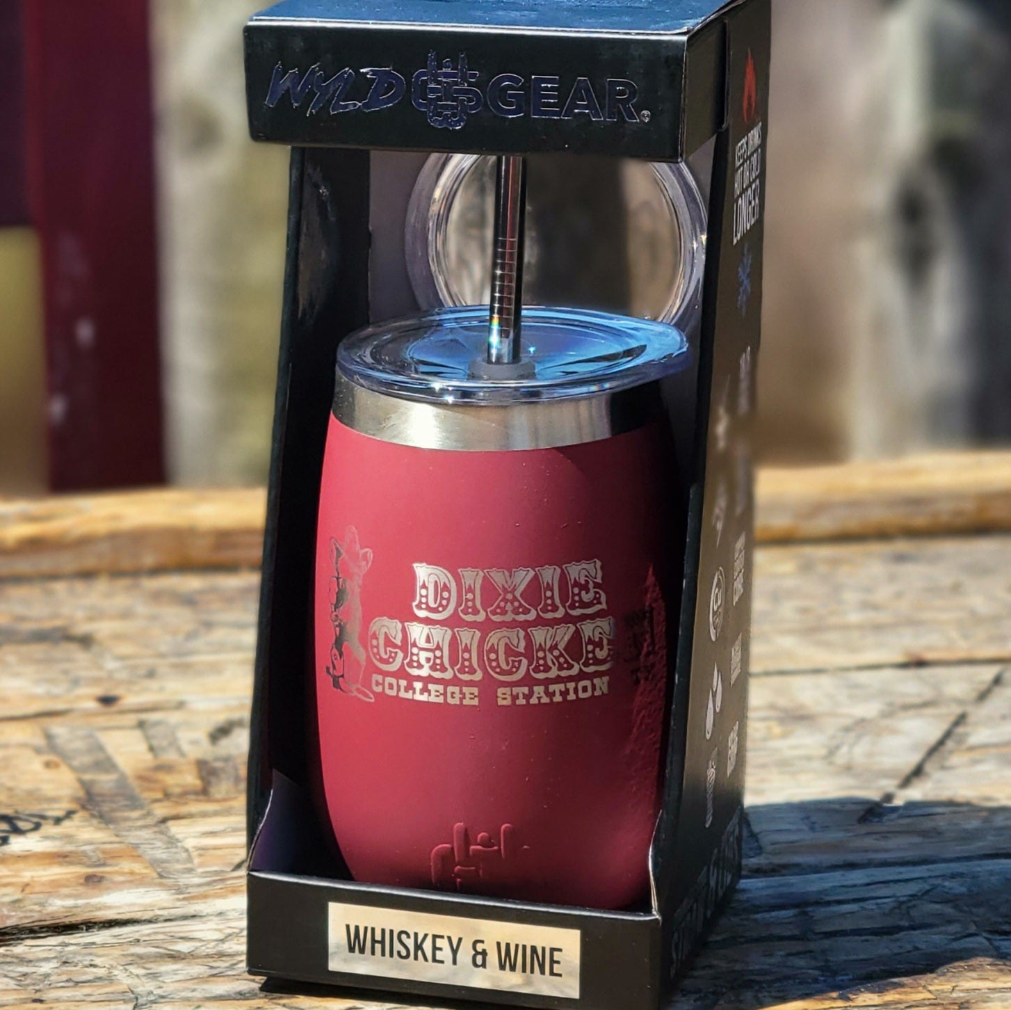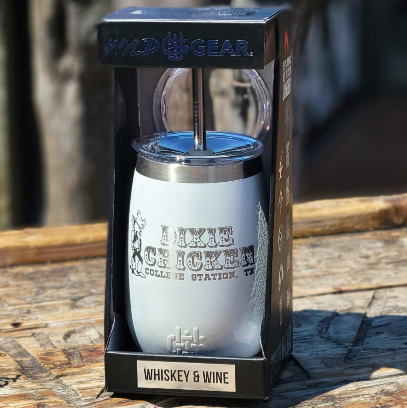 This insulated 12 oz. cup is perfect for Dixie Chicken sangria on the back porch! We've got 2 Wyld Gear wine cup options for you, the first is engraved with our classic Dixie Chicken circle logo and the other comes with our stacked logo. They come with a lid to prevent spillage and another lid with a built-in straw! Get one, or collect all of the colors, today!