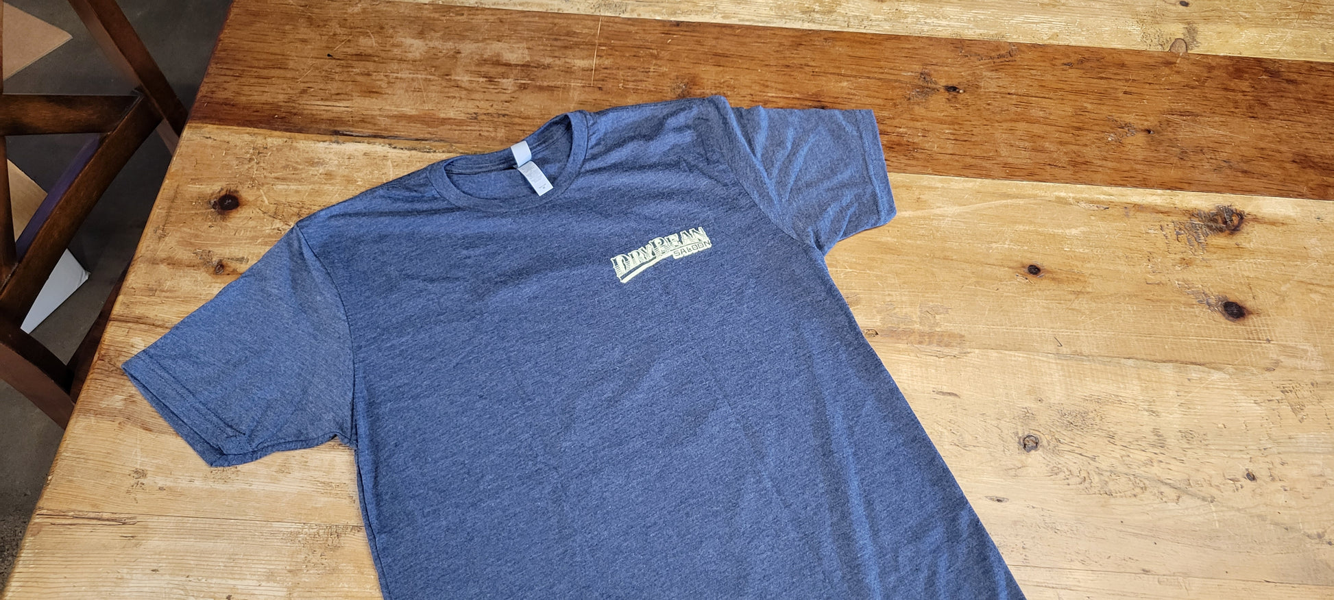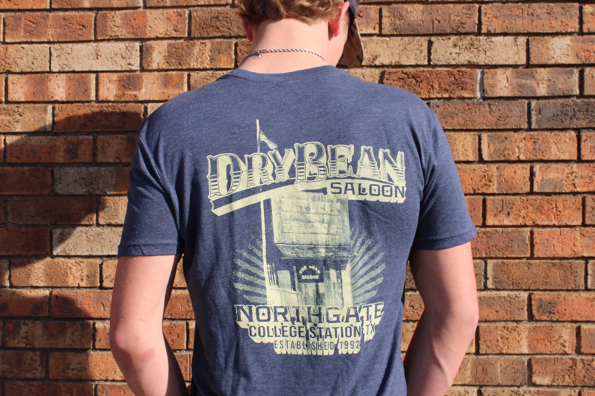 A vintage photo of the front facade of the Dry Bean Saloon on a soft shirt. It'll remind you of your first shot at the Bean and let everyone know, you're ready for your next!