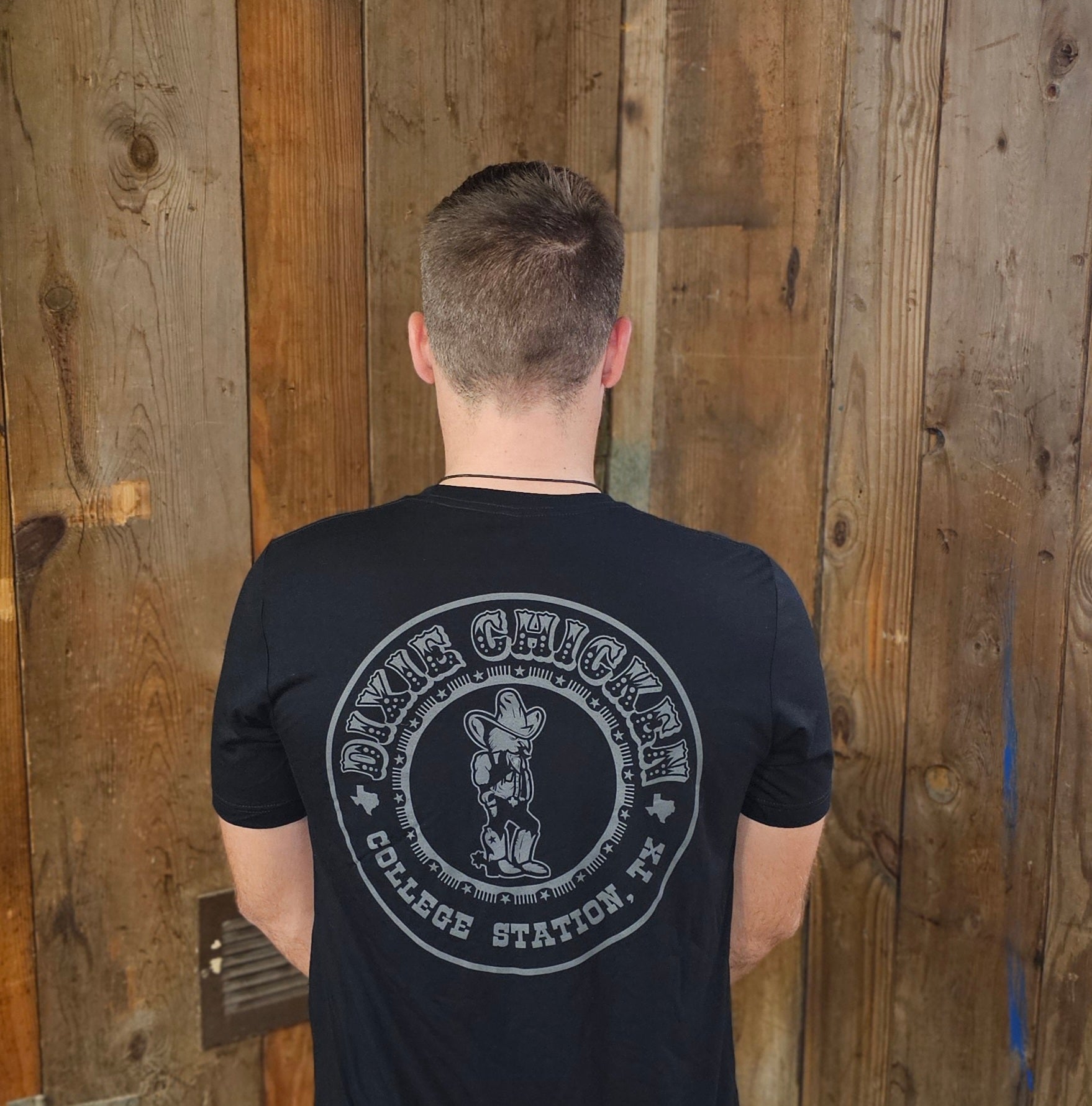 Introducing the Midnight Circle Logo- a soft black tri-blend shirt accented with a graphite "Dixie Chicken" on the front and our traditional Circle Logo on the back.