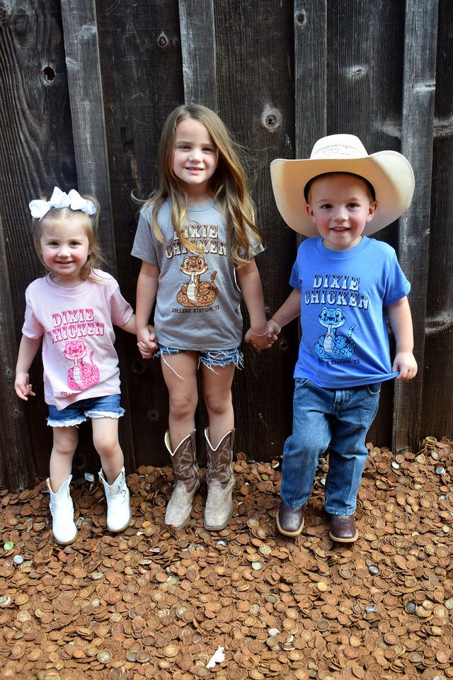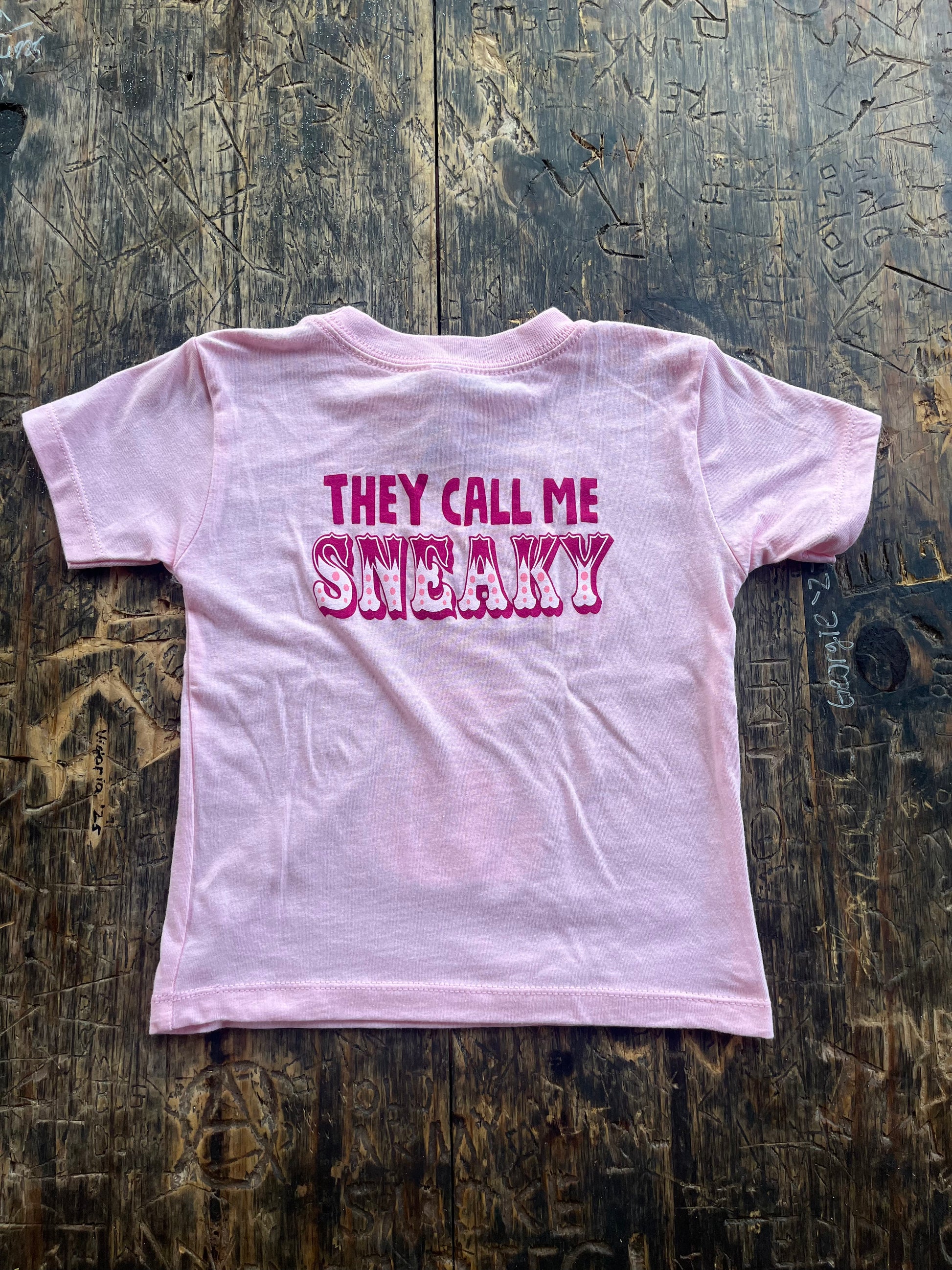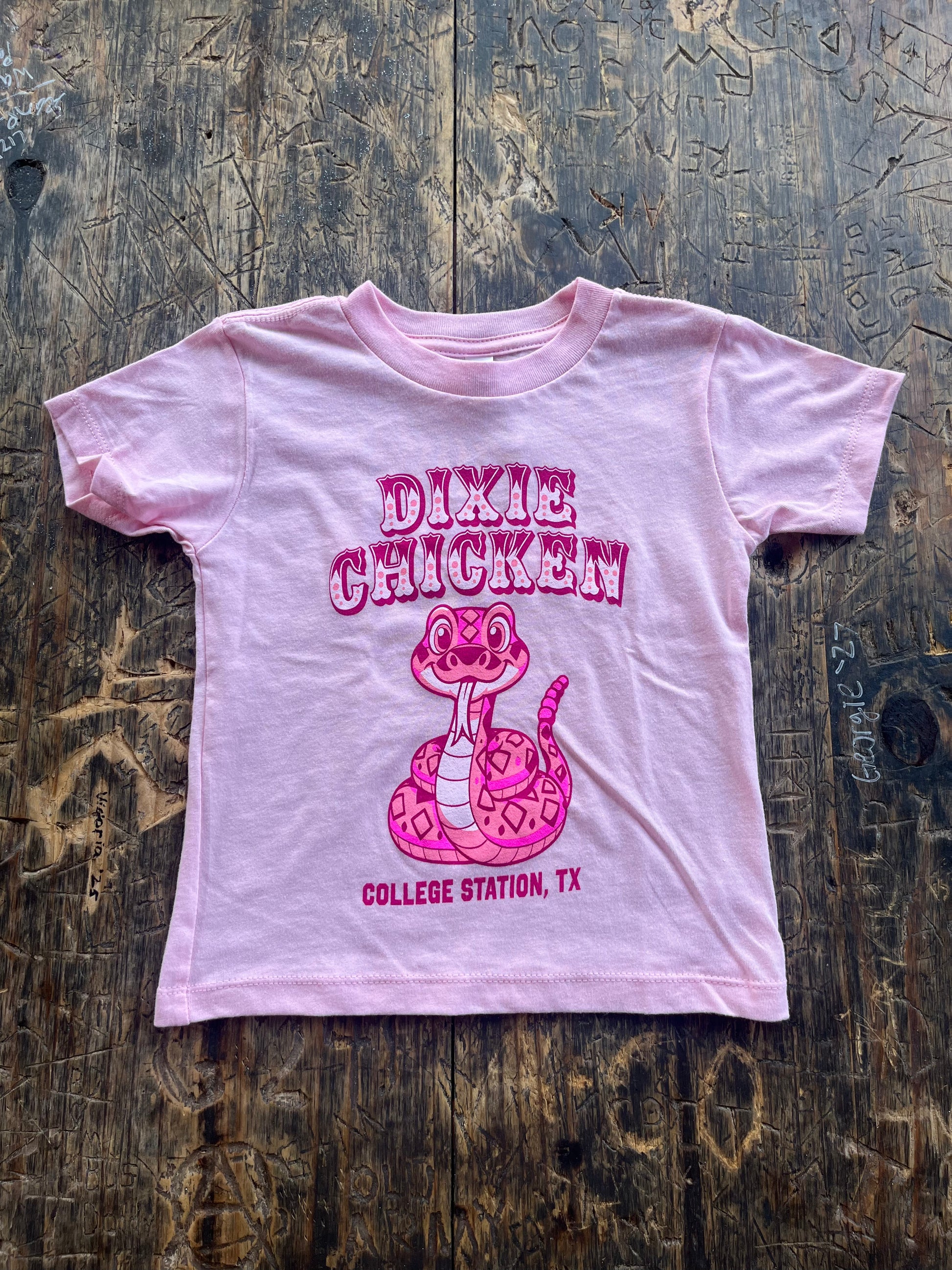 Our new Sneaky the Snake shirt with a pink punch! Comes in a handful of sizes for any age. Made with 100% cotton fabric.