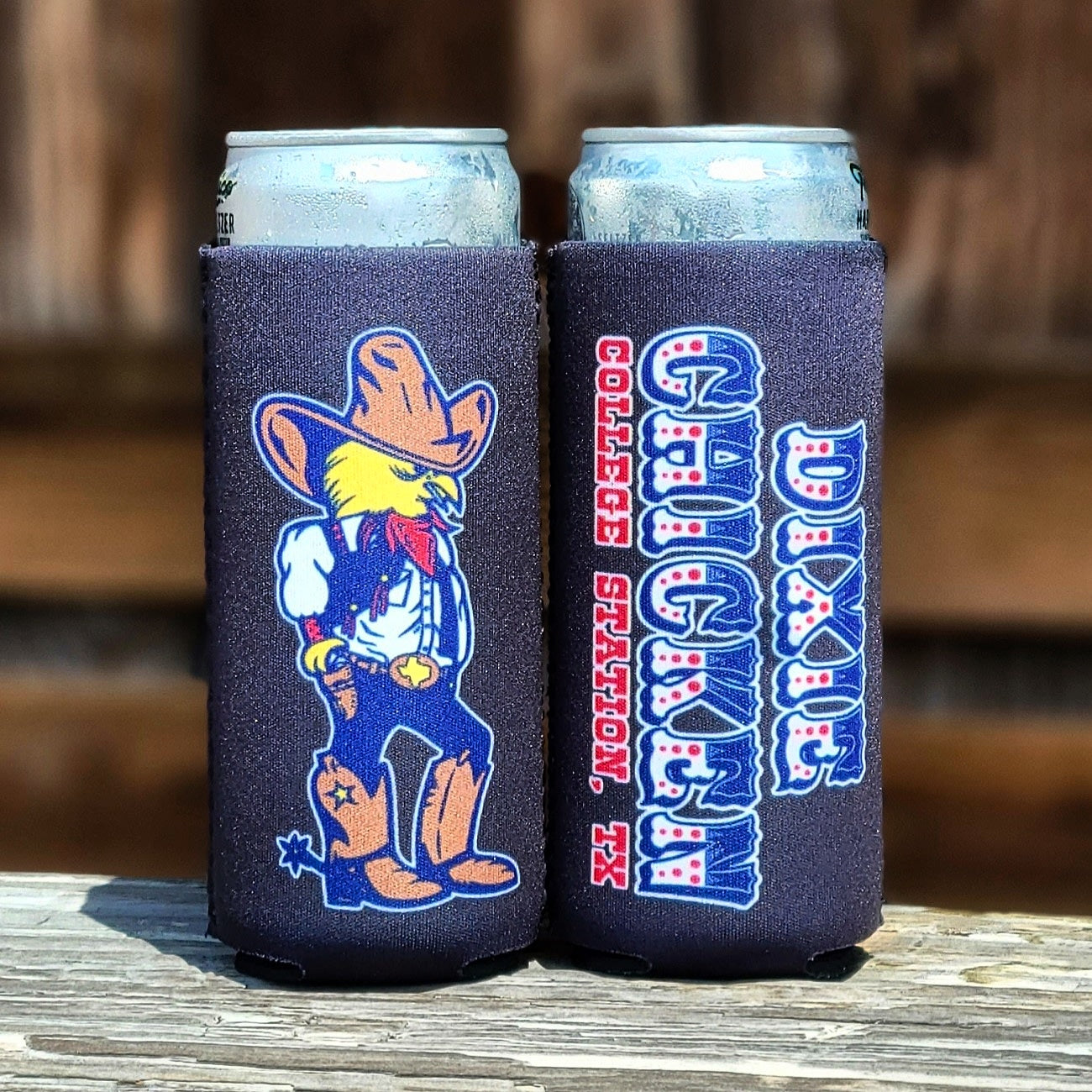 Skinny can fans rejoice! We've got Dixie Chicken koozies primed and ready for your drinks of choice! We've got our Bird logo on one side standing tall and the other says DIXIE CHICKEN loud and proud on this black neoprene koozie.